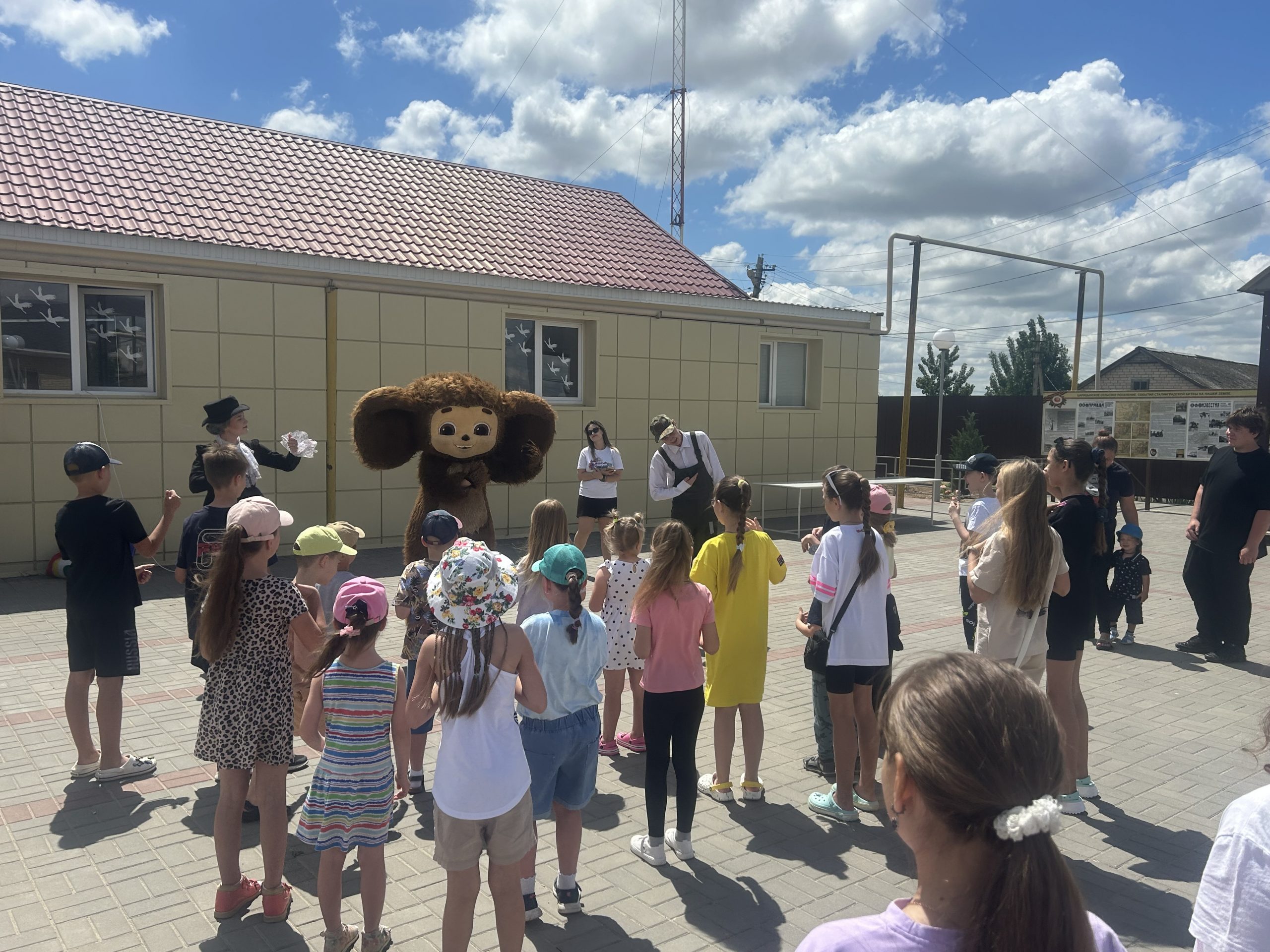 Чебурашка и его друзья развлекали пришедших на праздник детей.